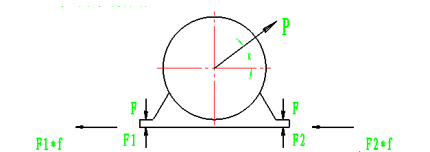 F是一個螺栓的預(yù)緊力,基本上是常數(shù)可以設(shè)想螺桿很長.F1,F(xiàn)2是一個螺栓處電機座的支撐力,f是摩擦系數(shù),約=0.15。